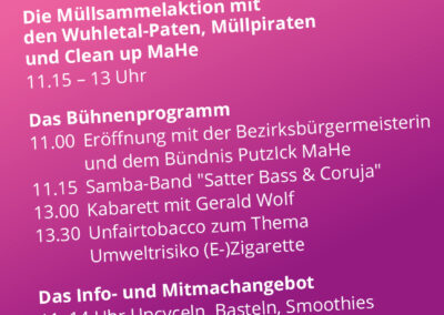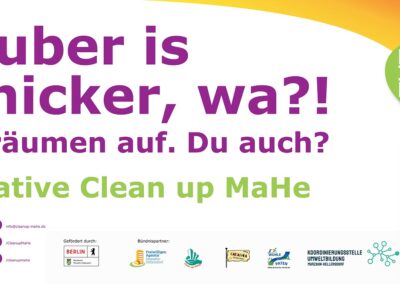 Dafür möchten wir uns herzlich bei Bezirksbürgermeisterin Nadja Zivkovic, Heidrun Schmidtke vom Vereinsvorstand des WfE e.V., der Freiwilligenagentur Marzahn-Hellersdorf und „Marzahn-Hellersdorf: Beste Aussichten“ bedanken. Ein besonderer Dank geht auch an alle Clean-Up-Initiativen von PutzIck MaHe sowie an alle, die an der Veranstaltung teilgenommen und mitgewirkt haben, darunter Anna Sebald von wirBerlin, Lehrerin Ulrike Sieder, Matthias Rosse vom Umweltamt, die Akademie für Ehrenamt Deutschland und viele weitere. Vielen Dank!