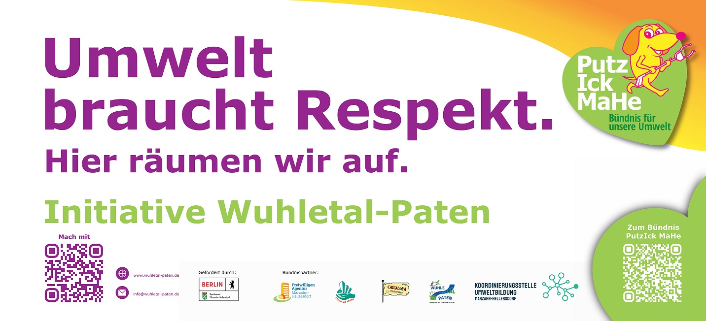 Wir schließen uns dem stadtteilweiten SUBBOTNIK in Marzahn-Hellersdorfam Samstag, dem 25. März 2023, an Motto: Schöner unser Marzahn-Hellerdorf – Mach mit! Wir machen unseren alljährlichen FRÜHJAHRSPUTZ der Wuhletal-Paten an diesem SAMSTAG und säubern das TAL...